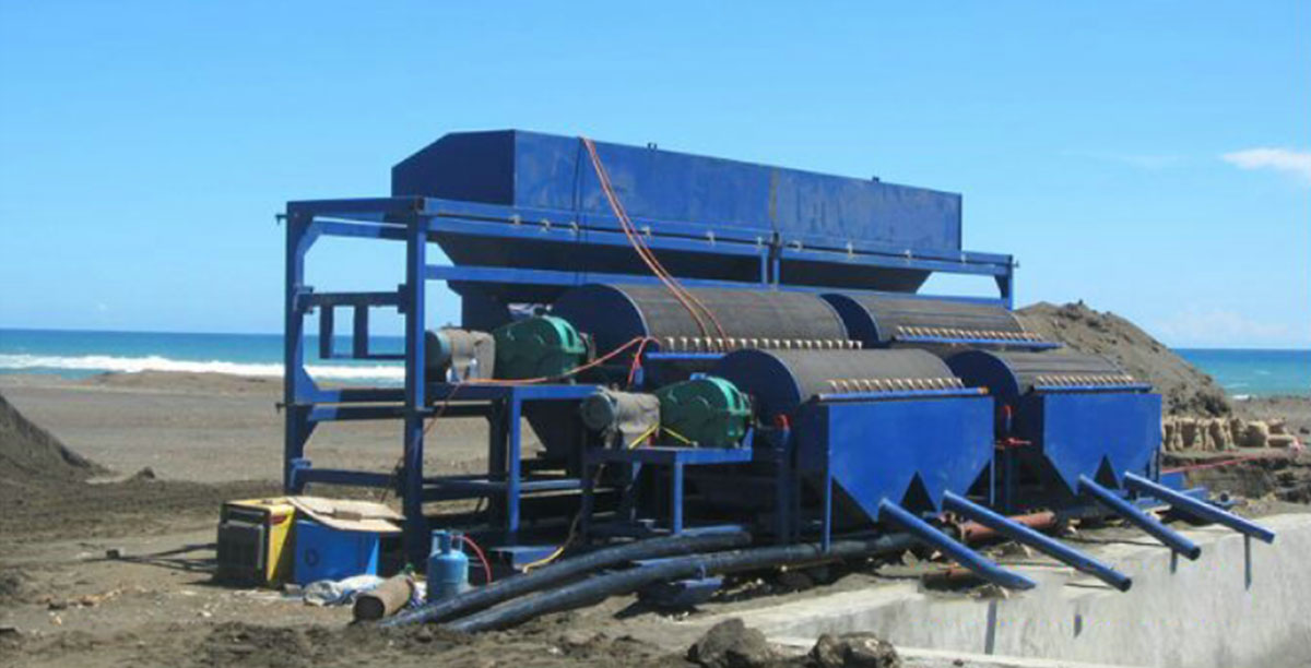 極低品位戈壁灘沙鐵礦磁選生產(chǎn)線是我公司自行研制的具有自主知識產(chǎn)權(quán)的從極低品位戈壁灘沙漠中提取鐵精粉的新產(chǎn)品,擁有發(fā)明專利兩項,實用新型專利兩項,該生產(chǎn)線采用先篩分后干選工藝,拋去大量尾礦,再經(jīng)過預(yù)選大大提高原礦品位,使球磨機“吃粗糧”變?yōu)椤俺跃Z”,大大降低了運行成本,保證精選后最終鐵精粉品位達到64%以上,而且設(shè)備投資少,節(jié)能效果顯著。